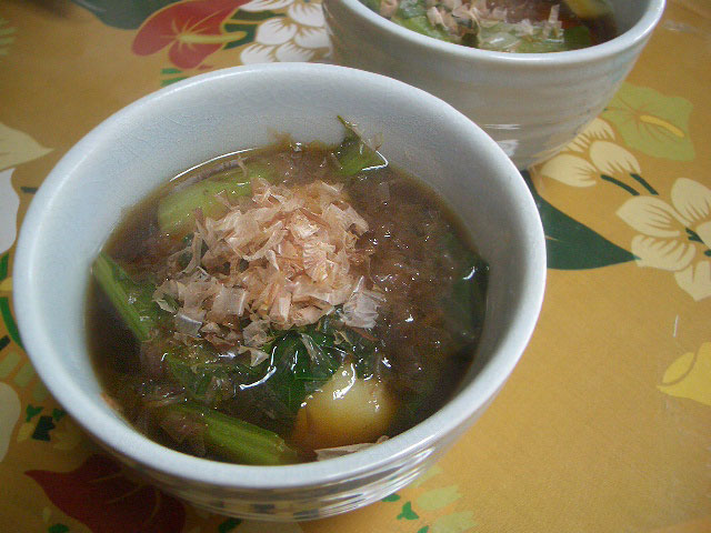 お雑煮つくりましたよー♪ ちゃんとダシをとってお醤油味です。